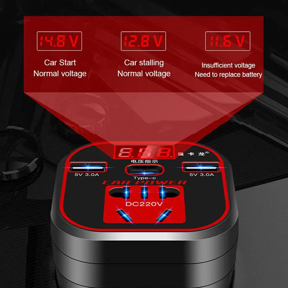 جهد الإدخال: 12 فولت/24 فولت جهد الخرج: تيار مستمر 1 10 فولت-220 فولت طاقة الخرج: 200 وات بحد أقصى مخرج USB: 3100 مللي أمبير/5 فولت مادة المنتج: مادة حماية البيئة ABS طول الكابل: 80 سم حجم المنتج: 6.7*7.5*5.5 سم